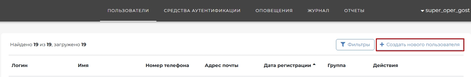 Для регистрации нового Пользователя нужно нажать кнопку «Создать нового пользователя».