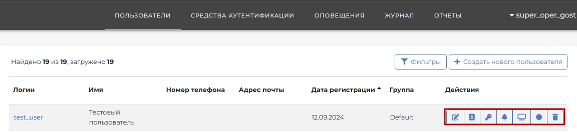 Для управления существующими Пользователями нужно перейти в раздел «Пользователи» в интерфейсе Оператора. Отобразится список всех зарегистрированных Пользователей.