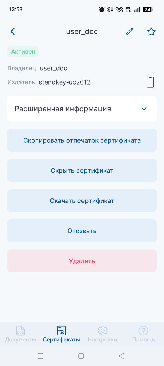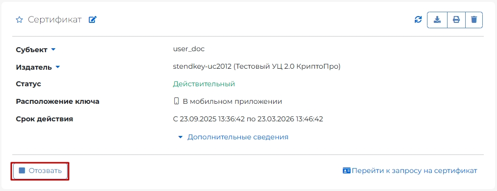 Отзыв сертификата через мобильное приложение