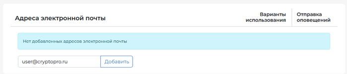 Для добавления адреса email нужно открыть «Контакты» и ввести email в разделе «Адреса электронной почты» и нажать кнопку «Добавить».